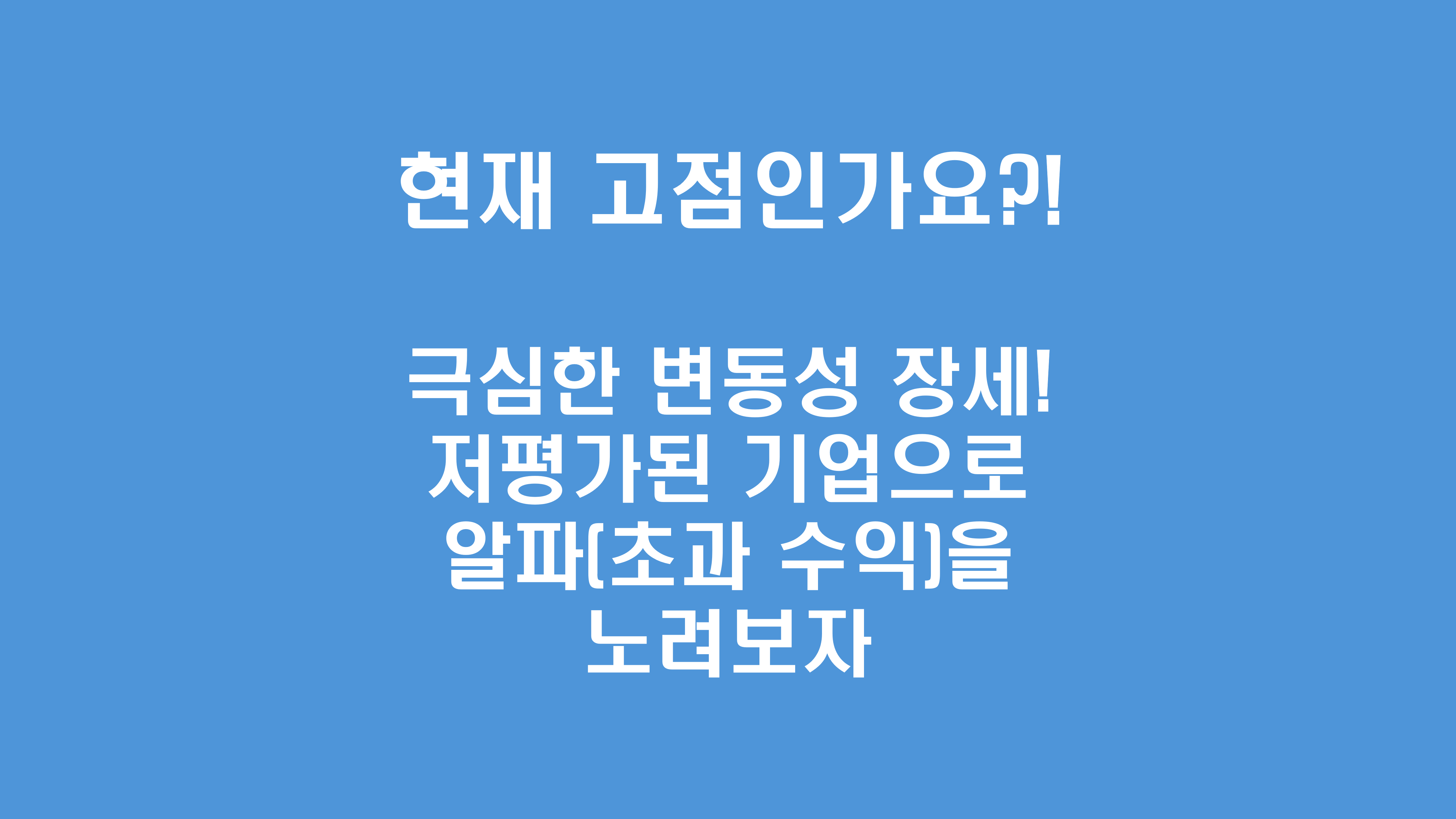 | 회복 잠재력 | 시장 조정 이후 회복 시기에 저평가 종목은 더 큰 상승률을 기록할 가능성이 있음 |